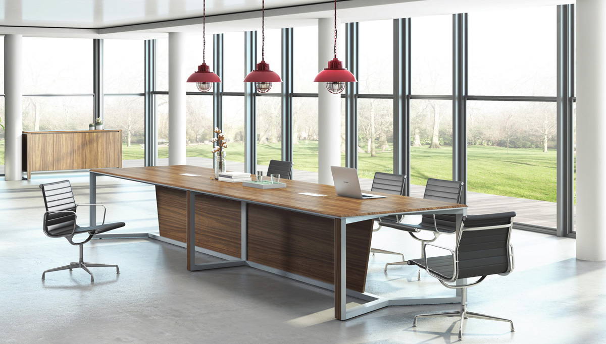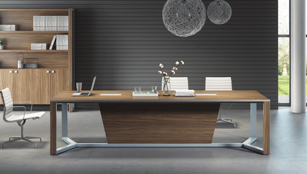 融入了现代主义风格,木纹肌理温煦,以干练的口字型钢脚,轻巧的薄板设计,赋予现代午夜免费福利空间理性的工作情调。