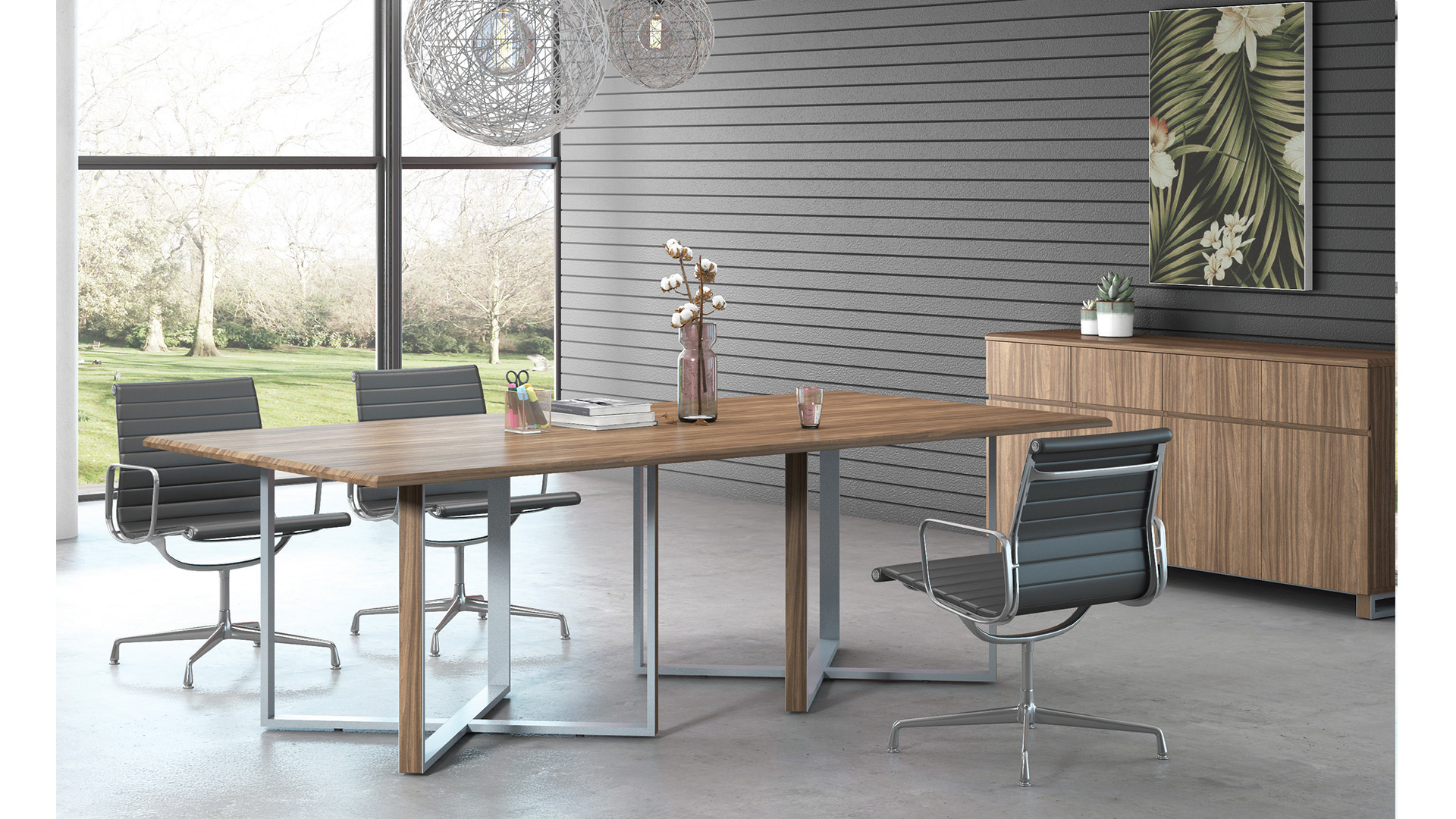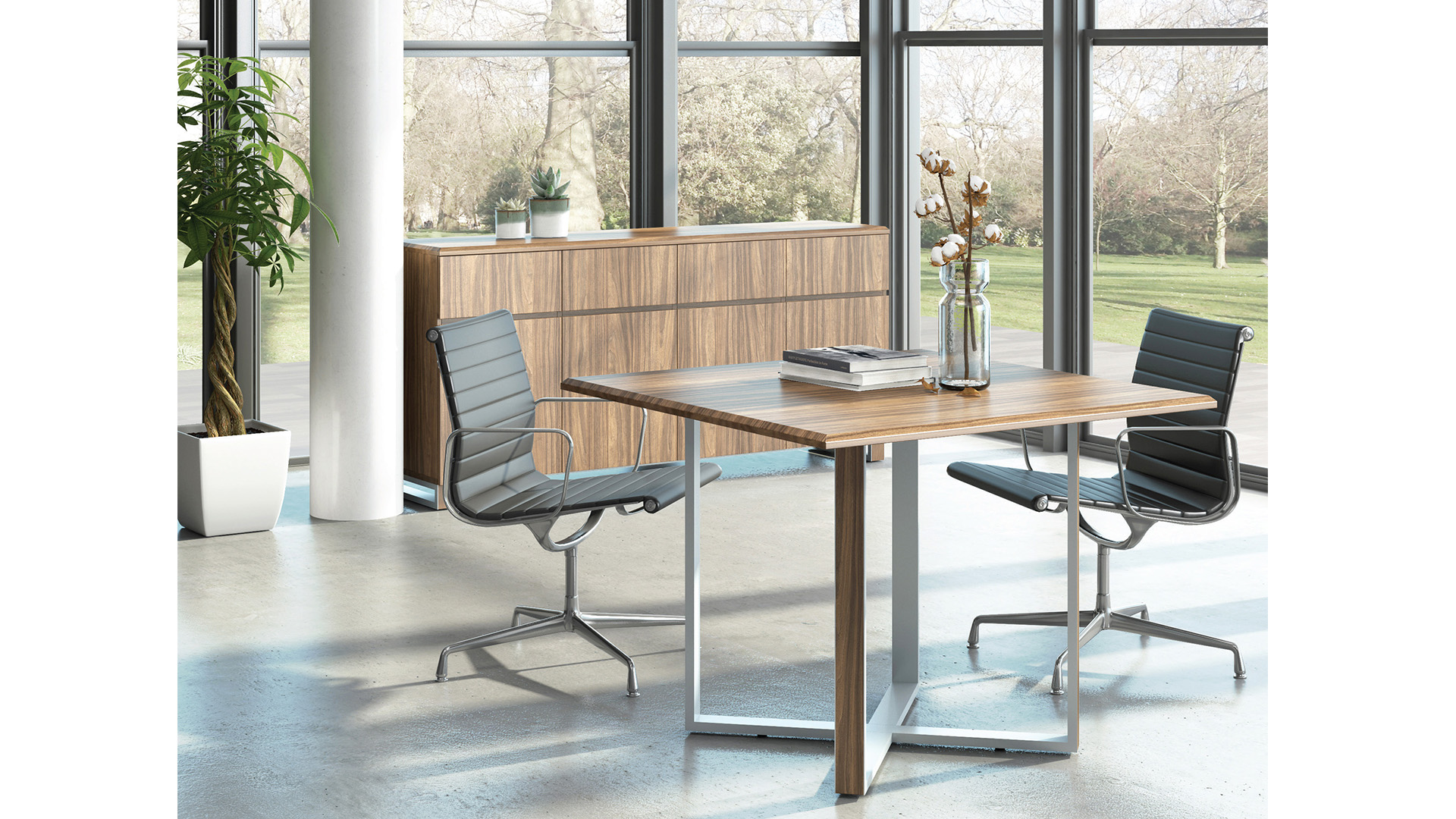 简洁的台面,外张的下脚,带来更大的容膝空间。多种尺寸可选,满足各类会议空间使用需求。